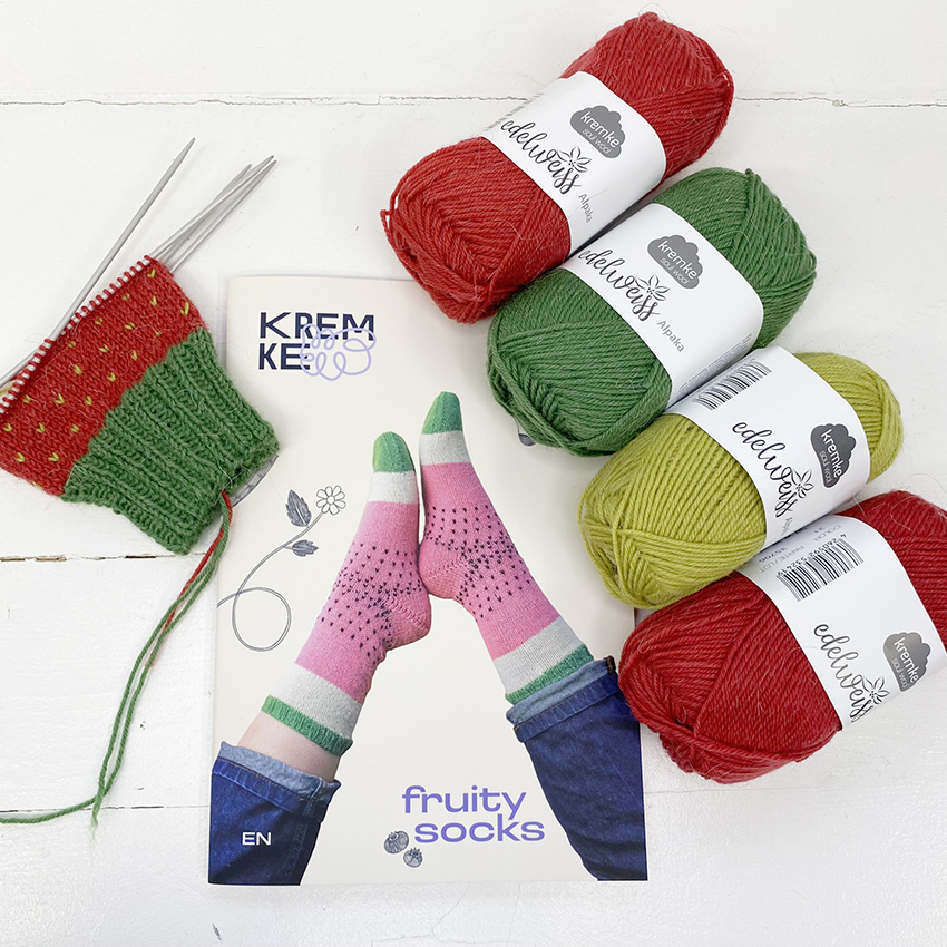 Strikkekit – Fruity Socks Jordbærstrømper